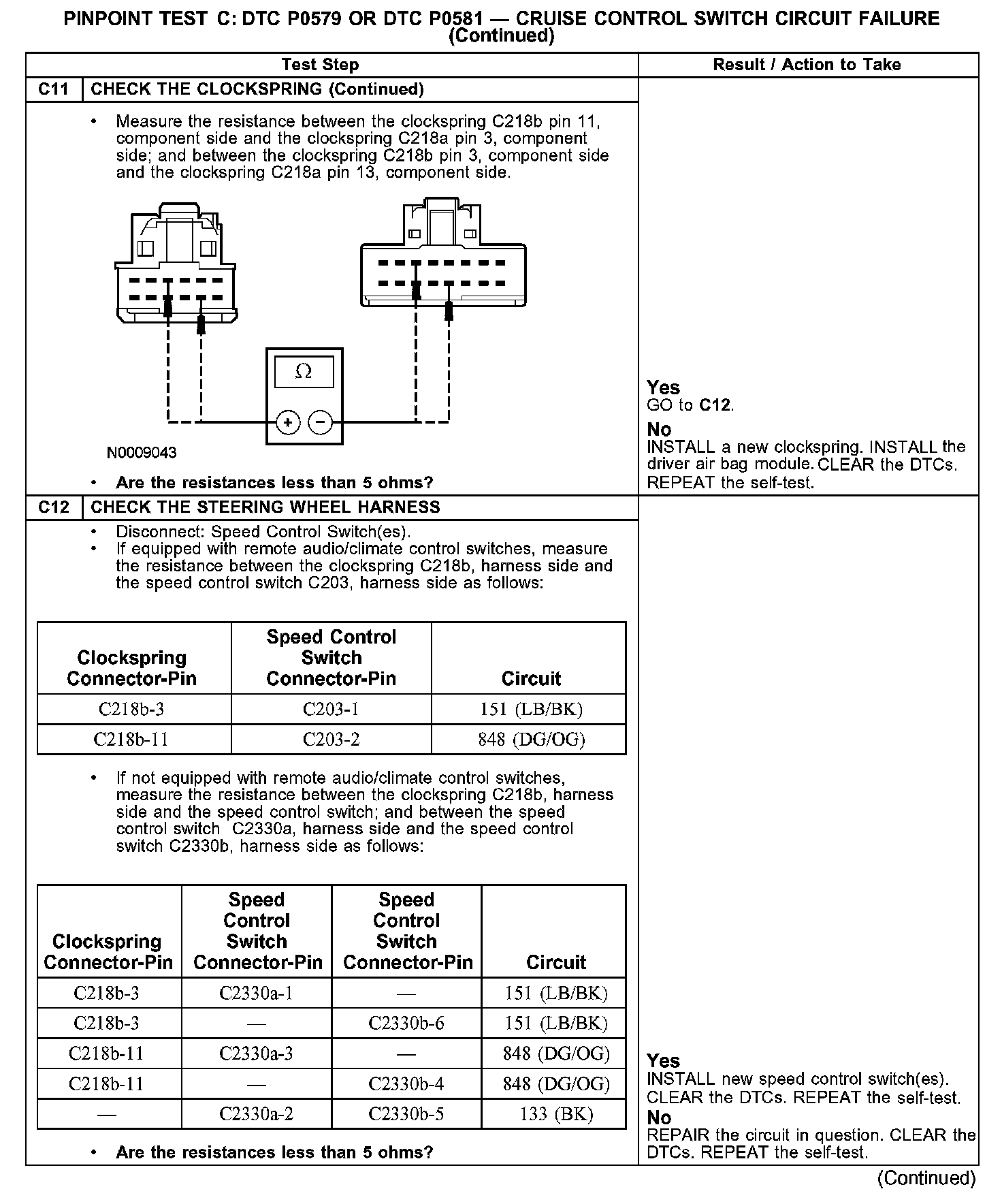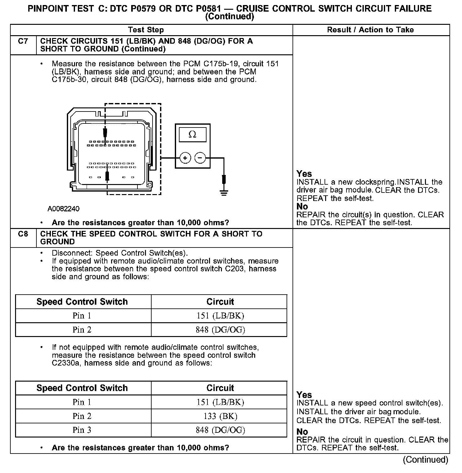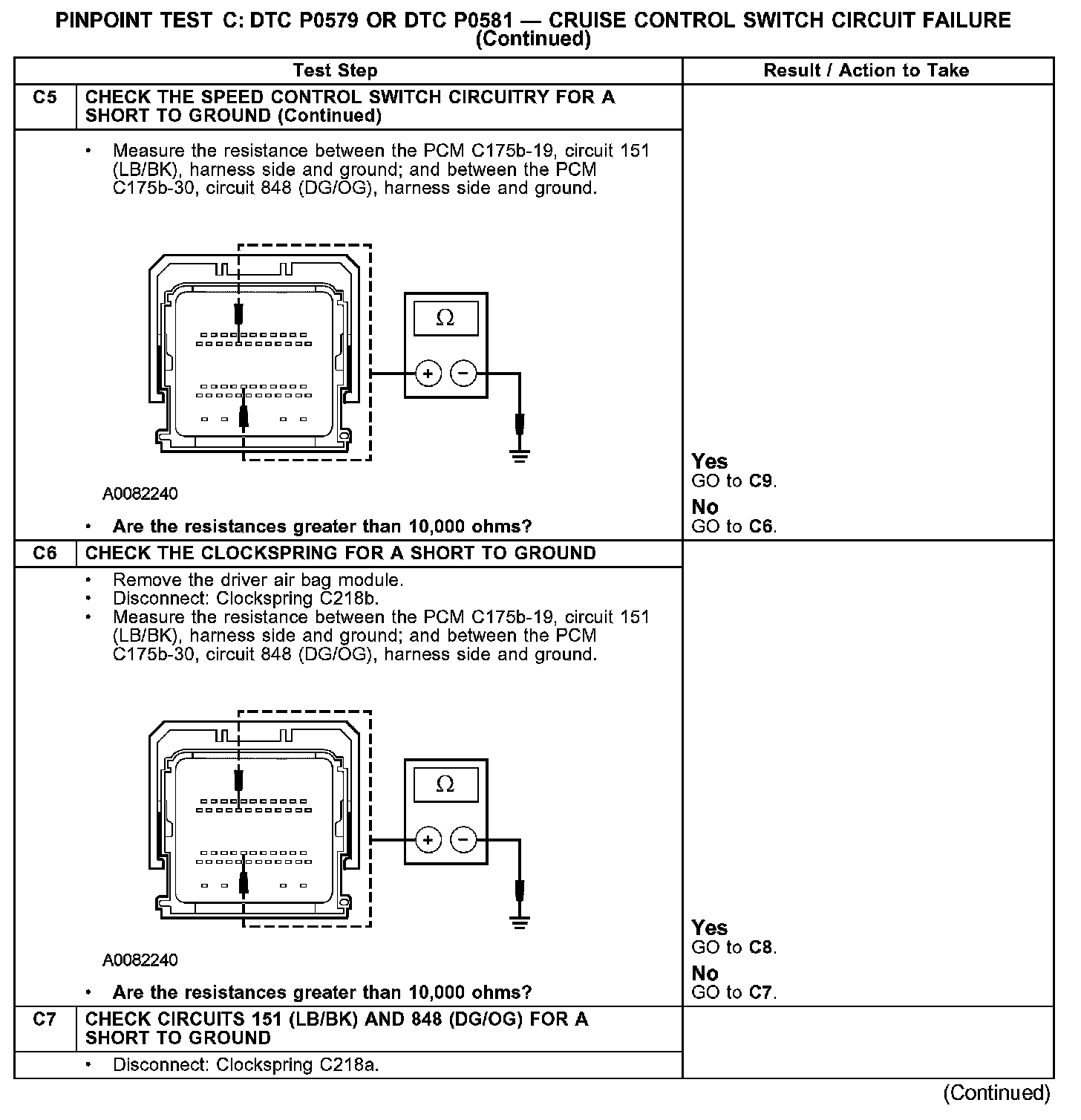PINPOINT TEST C: DTC P0579 OR DTC P0581 - CRUISE CONTROL SWITCH CIRCUIT FAILURE
