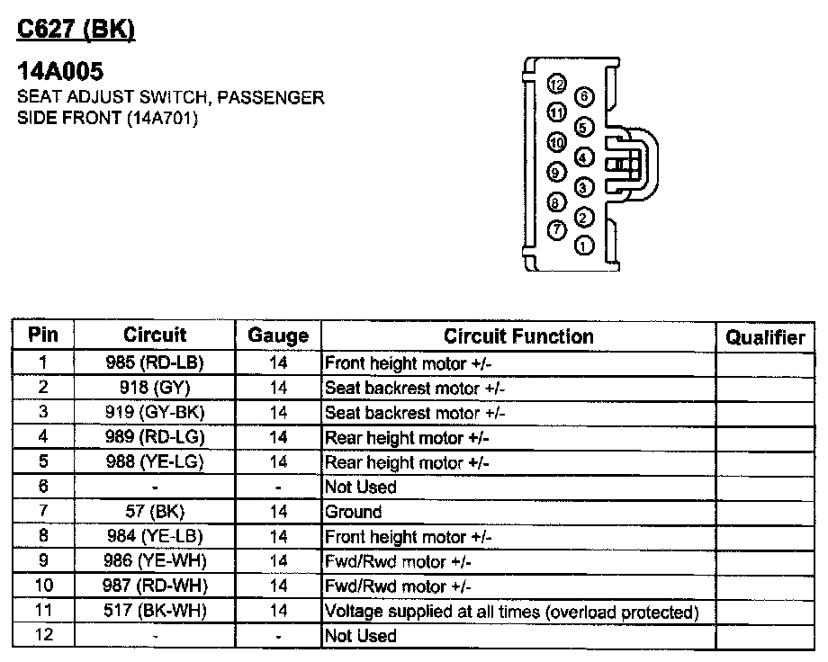 Seat Adjust Switch, Passenger Side Front