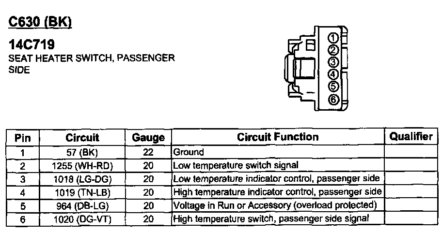 Seat Heater Switch, Passenger Side