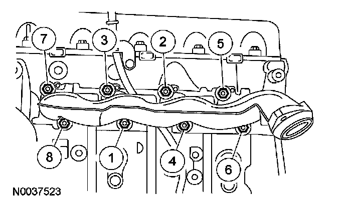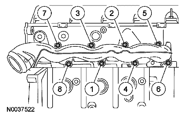 8. Install a new RH exhaust manifold gasket the RH exhaust manifold and 8 nuts.