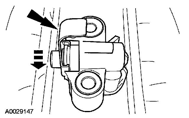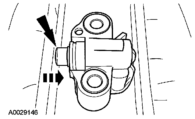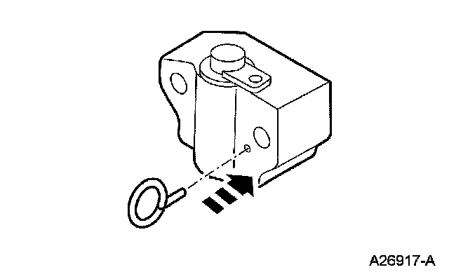 12. Install a paper clip into the hole of each tensioner housing to hold the ratchet assembly and plunger in during installation.