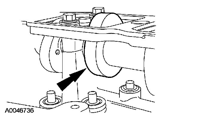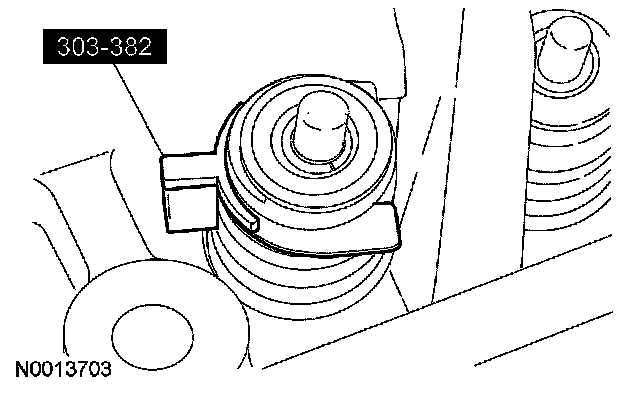 13. CAUTION: If one or both tensioner mounting bolts are loosened or removed, the tensioner-sealing bead must be inspected for seal integrity. Any cracks, tears, cuts or separation from the tensioner body or permanent compression of the seal bead, will require replacement of the tensioner.