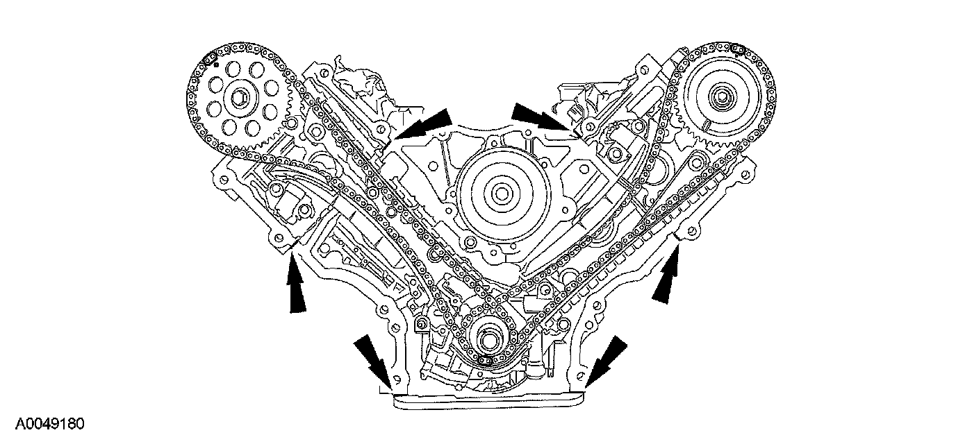 Apply a bead of sealant along the head-to-block surface and the oil pan-to-block surface as specified.