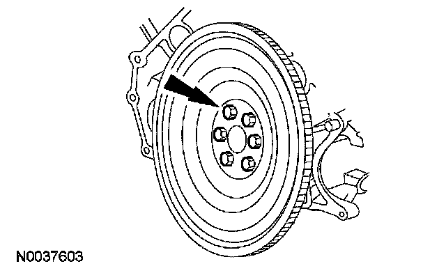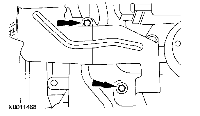 5. Remove the 2 oil pan-to-crankcase rear seal retainer plate bolts and the 6 crankcase rear seal retainer plate bolts.
