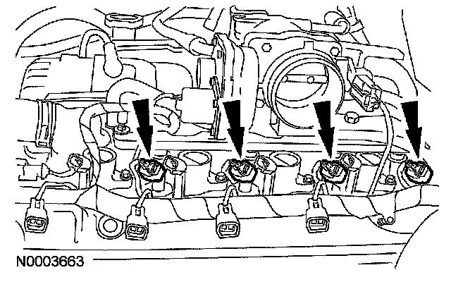 25. Disconnect the fuel charging wiring from the intake manifold crash bracket and remove the harness from the engine assembly.