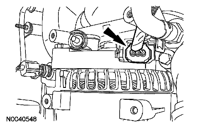 22. Disconnect the radio ignition interference capacitor and remove the engine control sensor wiring.