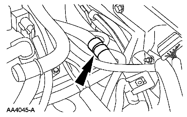 23. Disconnect the knock sensor (KS) electrical connector and the wiring harness pin-type retainer.