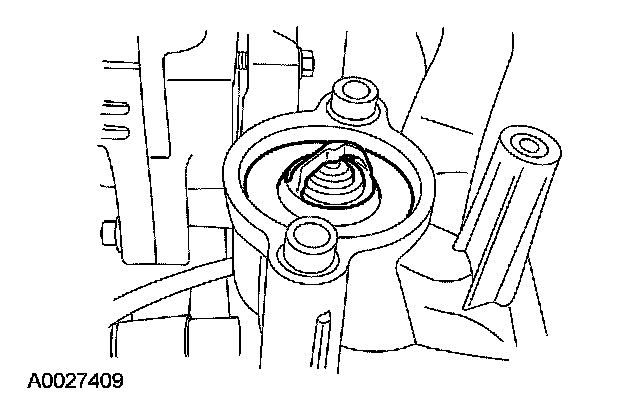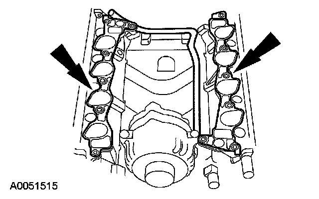 CAUTION: During engine repair procedures, cleanliness is extremely important. Any foreign material (including any material created while cleaning gasket surfaces) that enters the oil passages, coolant passages or the oil pan can cause engine failure.