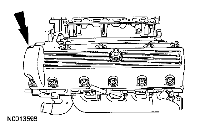 38. Remove the 5 studs and 5 bolts and the LH valve cover. Discard the gasket.