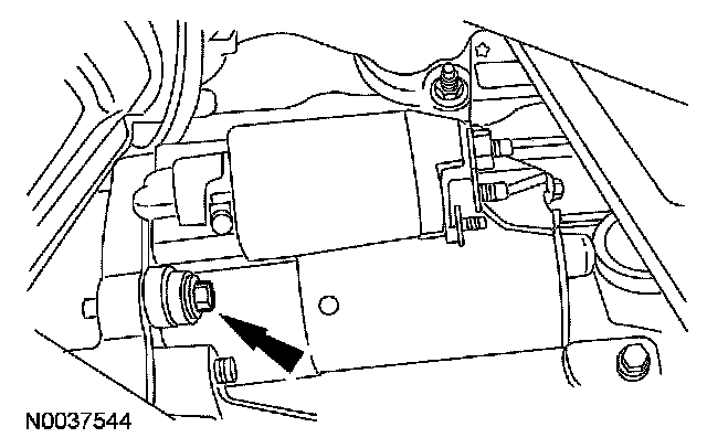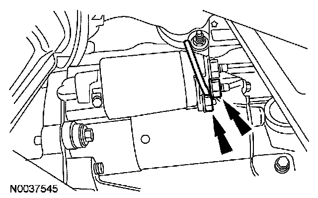 15. Install the starter motor and install the upper and lower starter bolts finger-tight.