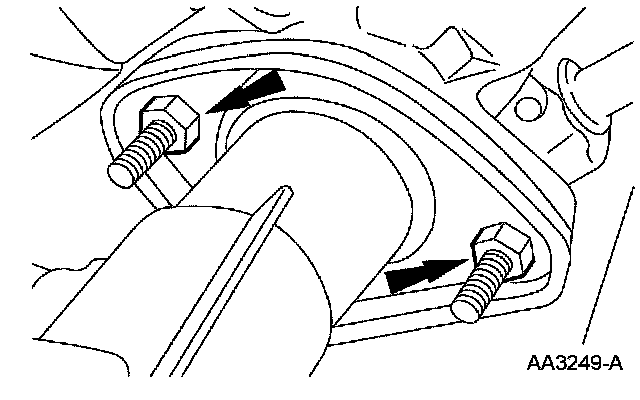 9. Lower the transmission and install the 2 transmission insulator nuts.