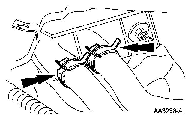 21. Connect the engine wiring harness retainers to the A/C compressor.