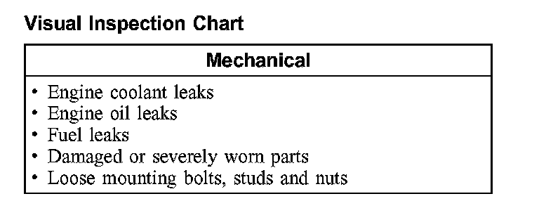 2. Visually inspect for obvious signs of mechanical damage. Refer to the chart.