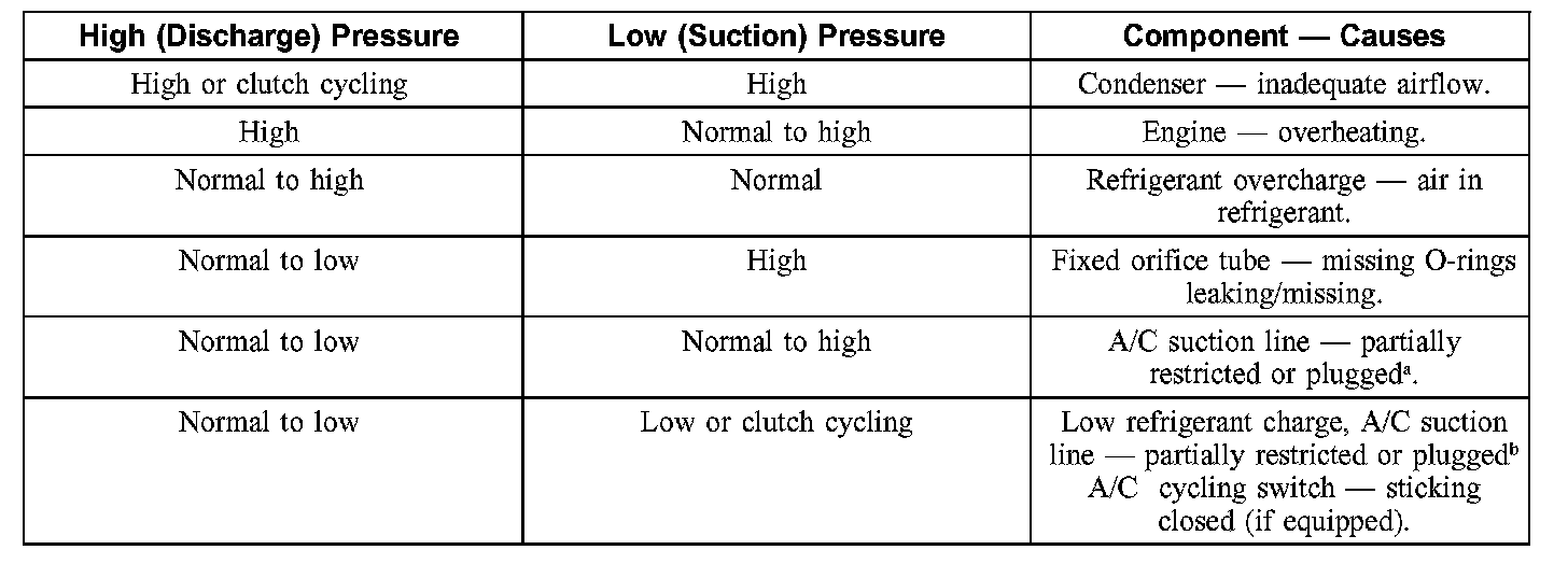 1. NOTE: The table is used to guide diagnosis of the refrigerant system if operating pressures are outside normal limits.