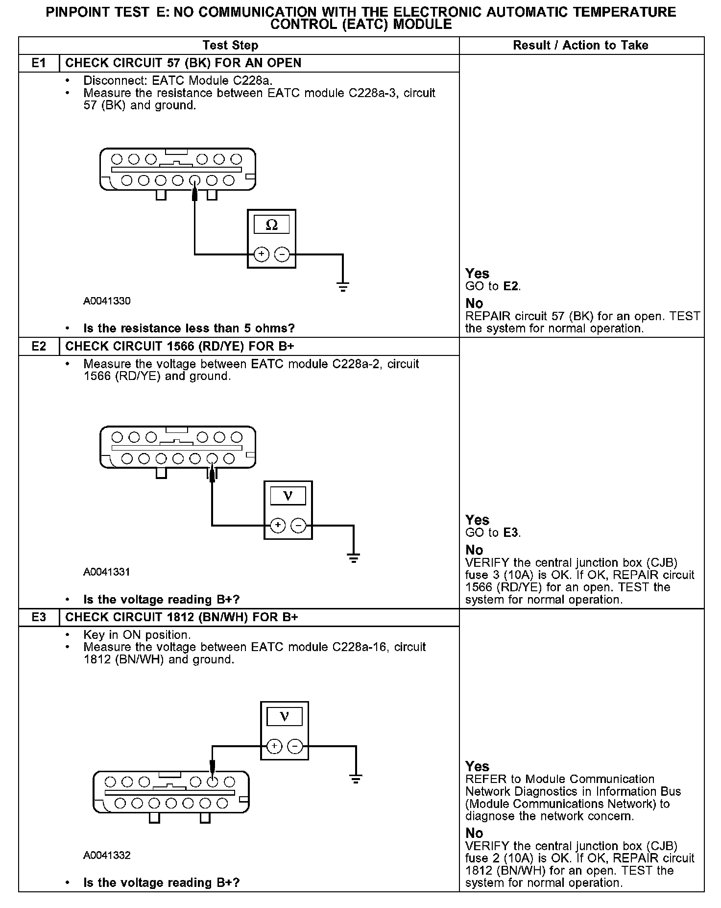 PINPOINT TEST E: NO COMMUNICATION WITH THE ELECTRONIC AUTOMATIC TEMPERATURE CONTROL MODULEE1-E3: