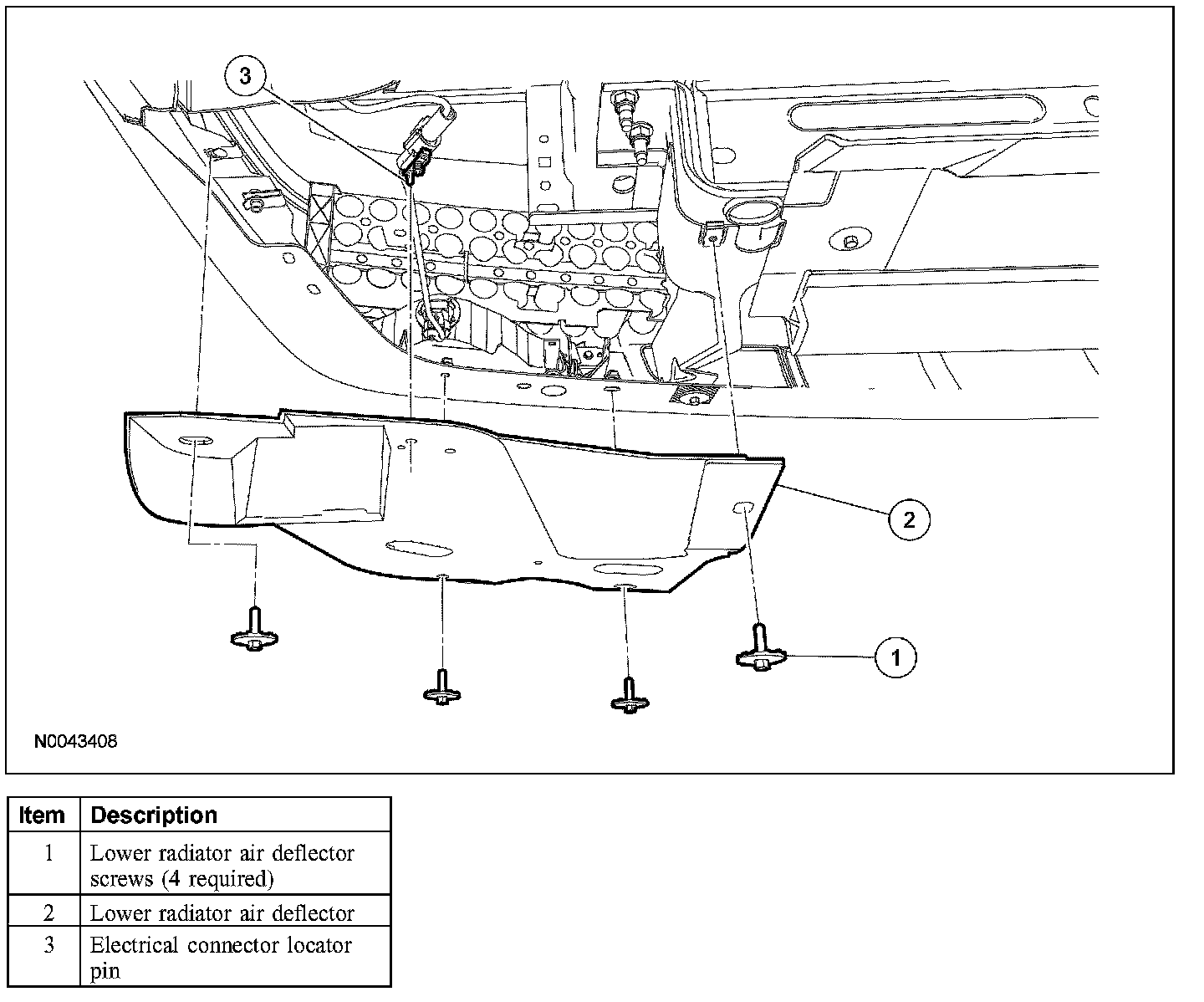 2. Remove the 4 screws and the lower radiator air deflector.