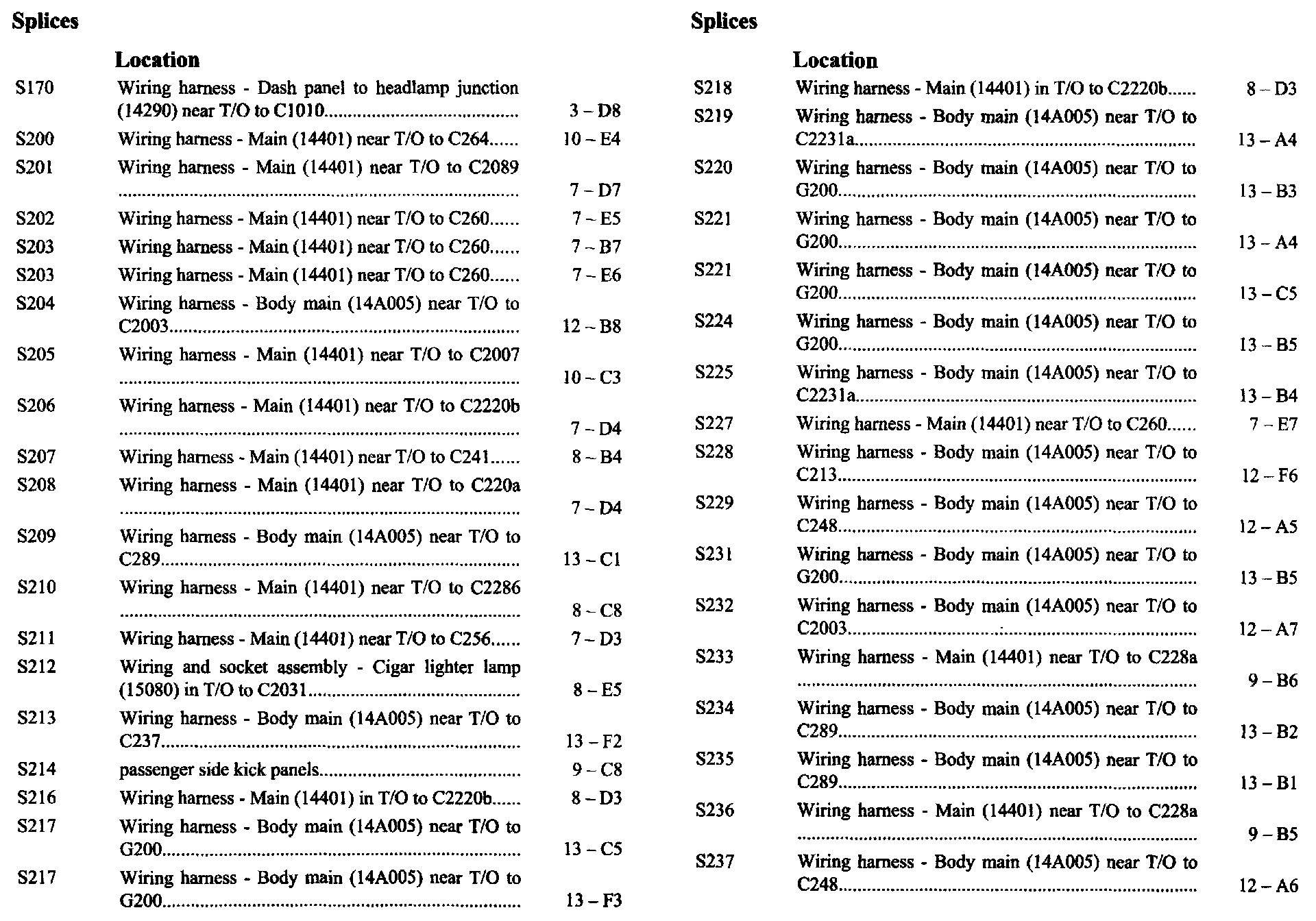 If a link on the Splices Location Index to a View is not provided, that means that the Splices and/or View in question does NOT apply to the vehicle model selected.