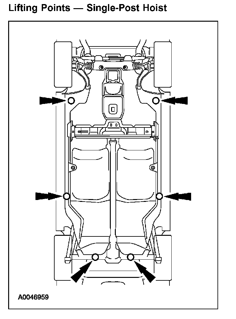 To lift the rear or either side of the rear end, position the floor jack or the hoist under the rear lift points.