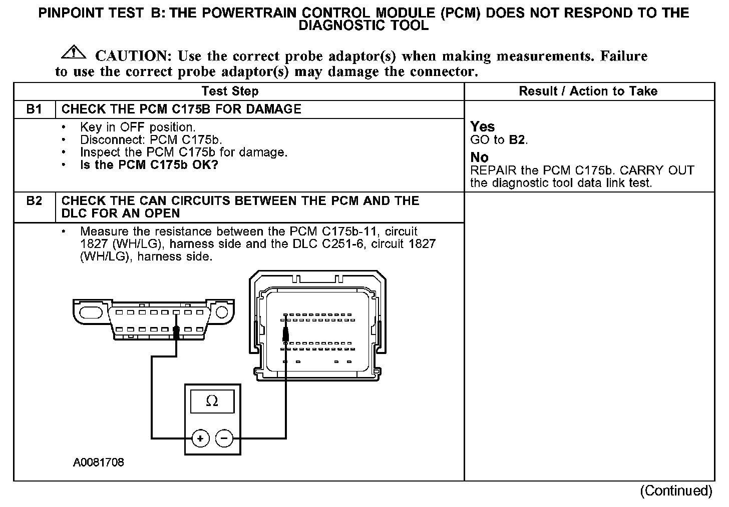 PINPOINT TEST B: THE POWERTRAIN CONTROL MODULE (PCM) DOES NOT RESPOND TO THE DIAGNOSTIC TOOLB1-B2: