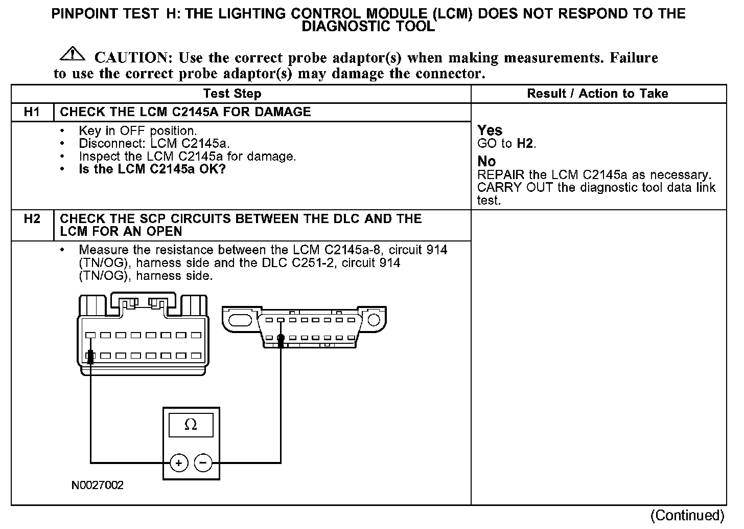 PINPOINT TEST H: THE LIGHTING CONTROL MODULE (LCM) DOES NOT RESPOND TO THE DIAGNOSTIC TOOLH1-H2: