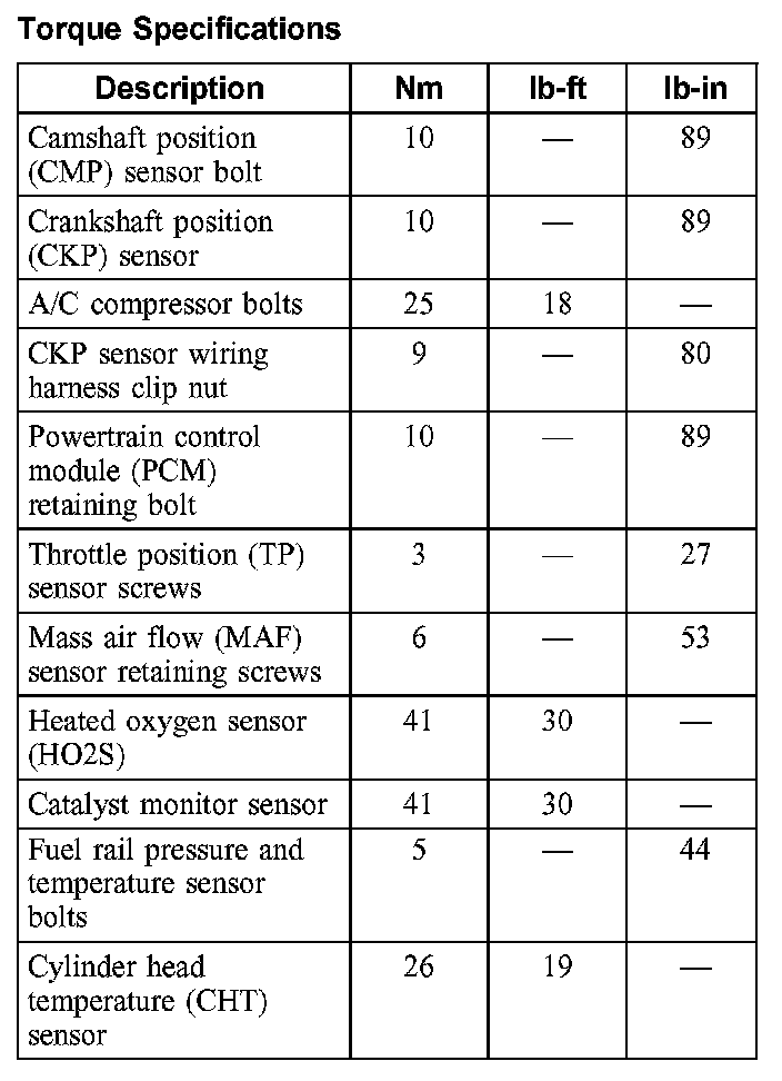 Torque Specifications: