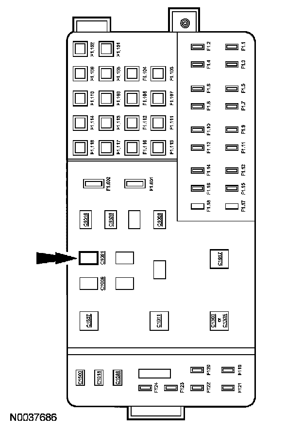 1. NOTE: The fuel pump relay is located in the smart junction box (SJB) location C1051.