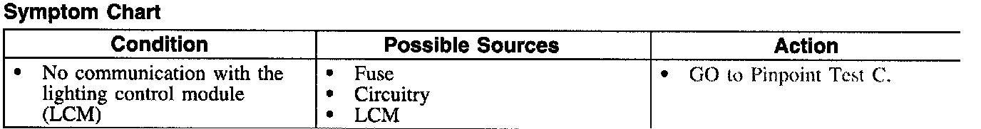PINPOINT TEST C: NO COMMUNICATION WITH THE LIGHTING CONTROL MODULE (LCM)