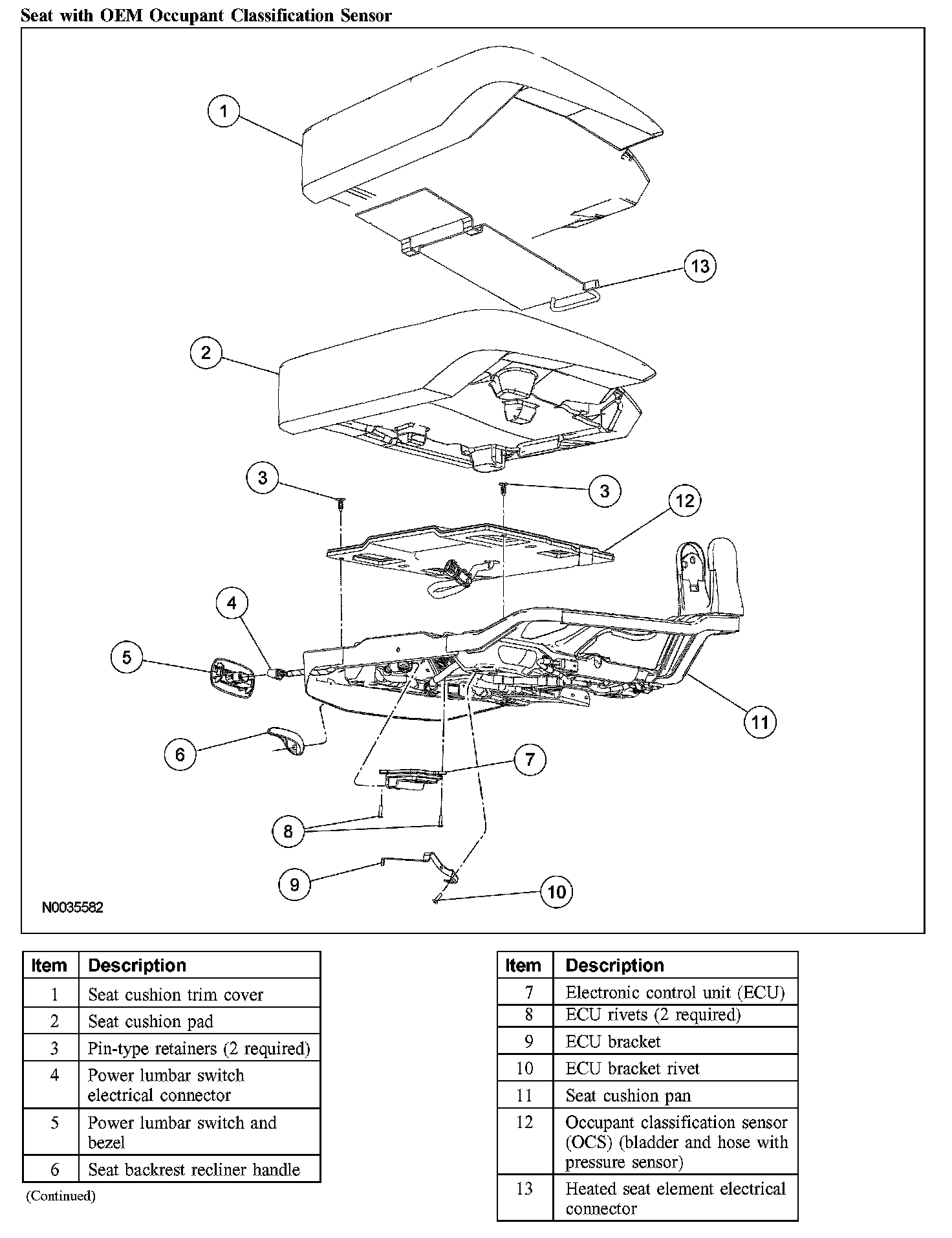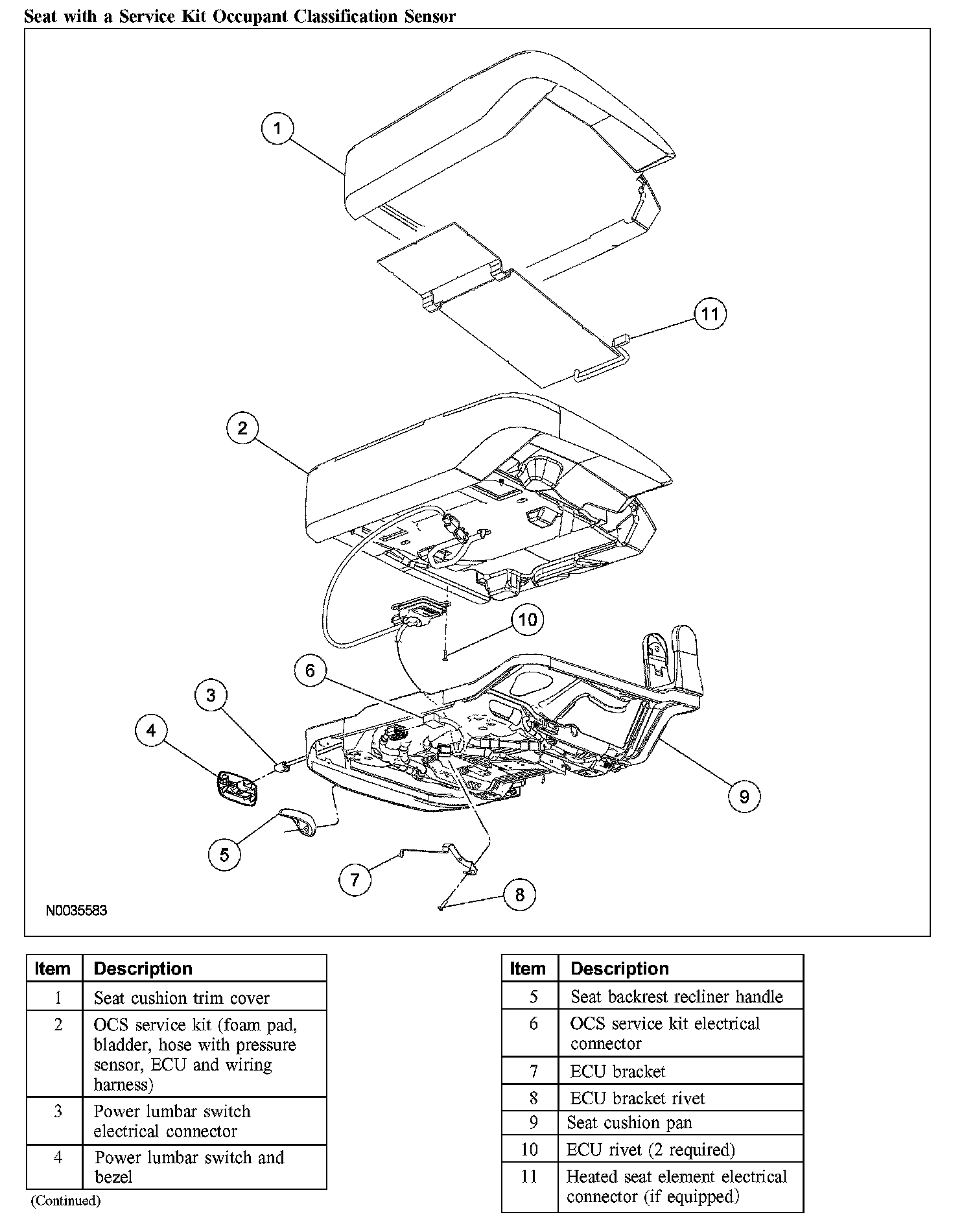 - Occupant classification sensor (OCS) system components (seat cushion foam pad, bladder with pressure sensor and electronic control unit) are calibrated to each other and are serviced as an assembly. The OCS system components are not to be installed separately. If a new OCS system, OCS system component or seat cushion foam pad are needed, a new OCS system service kit (seat cushion foam pad, bladder with pressure sensor and electronic control unit) must be installed as an assembly.