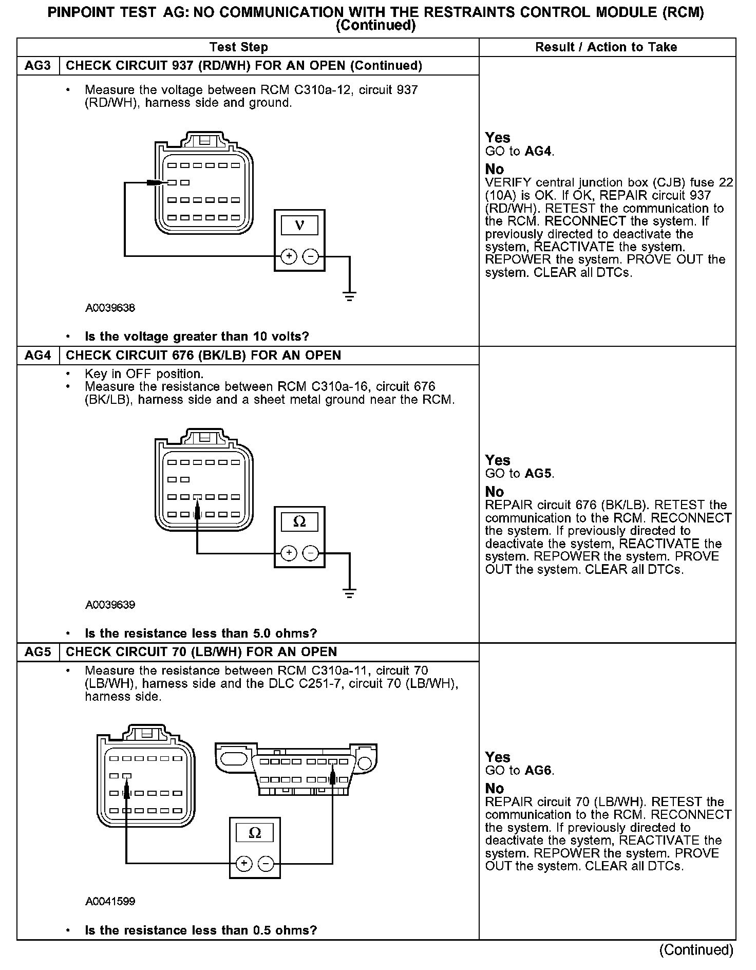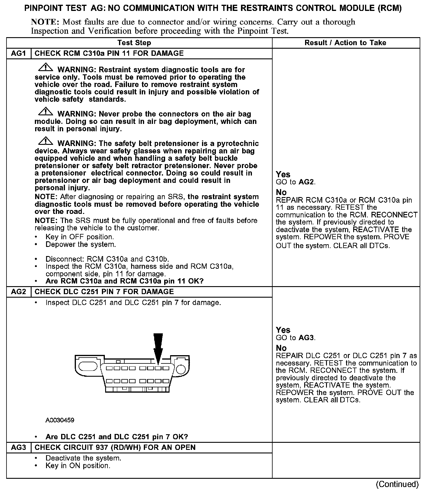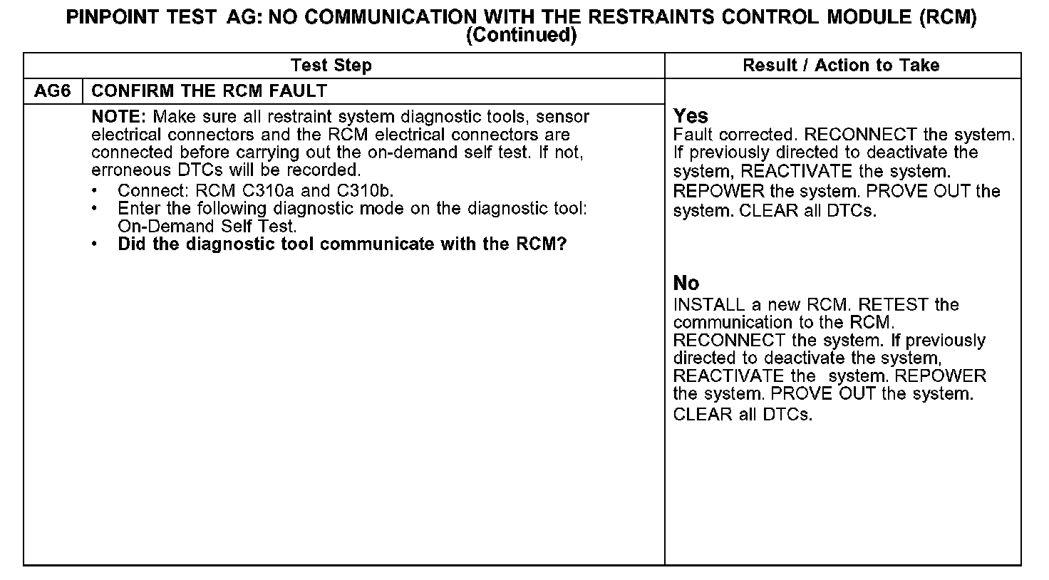 PINPOINT TEST AG: NO COMMUNICATION WITH THE RESTRAINTS CONTROL MODULE (RCM)AG1-AG3:
