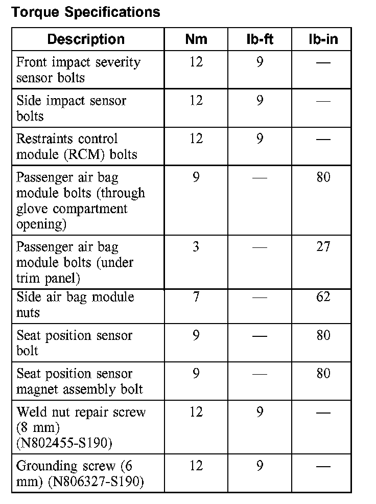 Torque Specifications:
