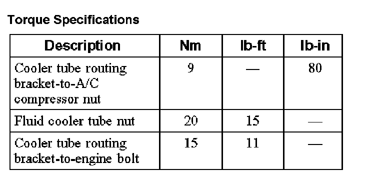 Torque Specifications: