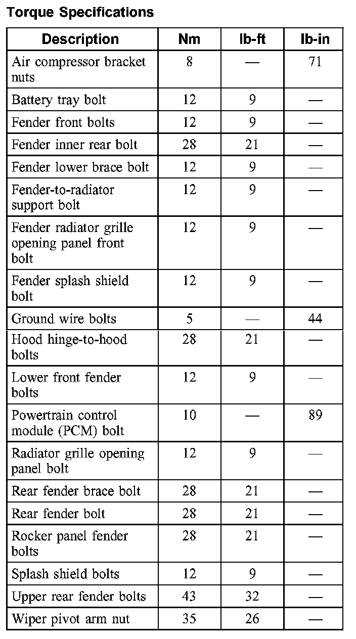 Torque Specifications: