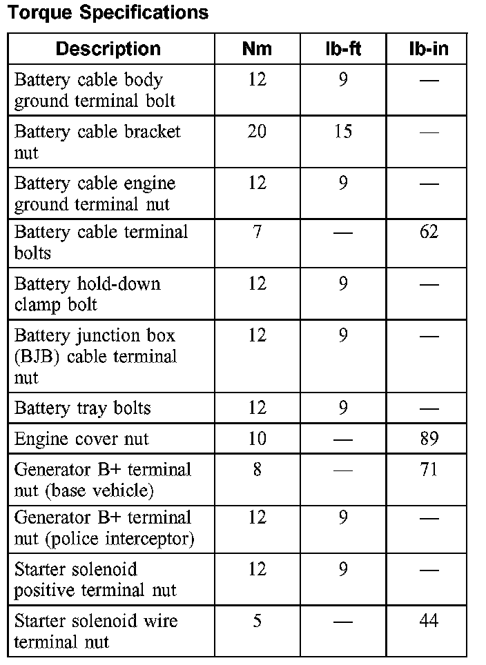 Torque Specifications: