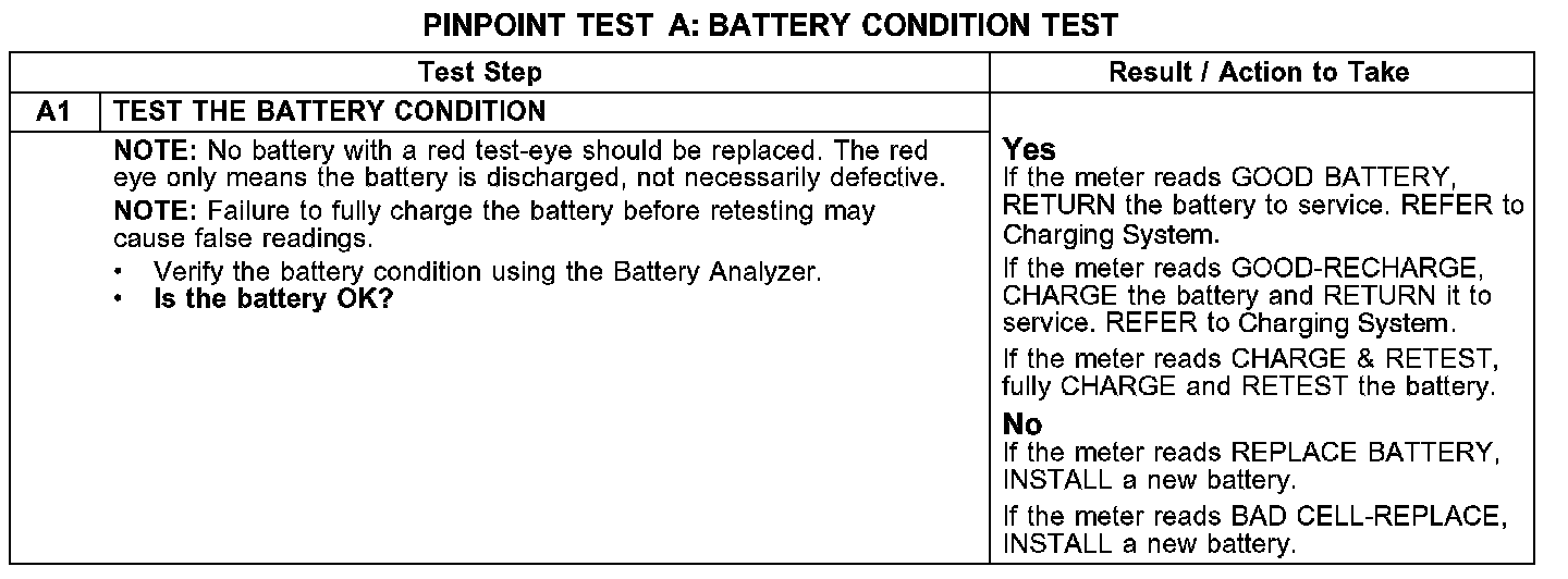 PINPOINT TEST A: BATTERY CONDITION TEST