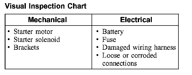 2. Visually inspect for obvious signs of mechanical and electrical damage; refer to the chart.