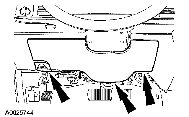 3 Pull outward to release the retaining clips and remove the lower steering column opening finish panel.