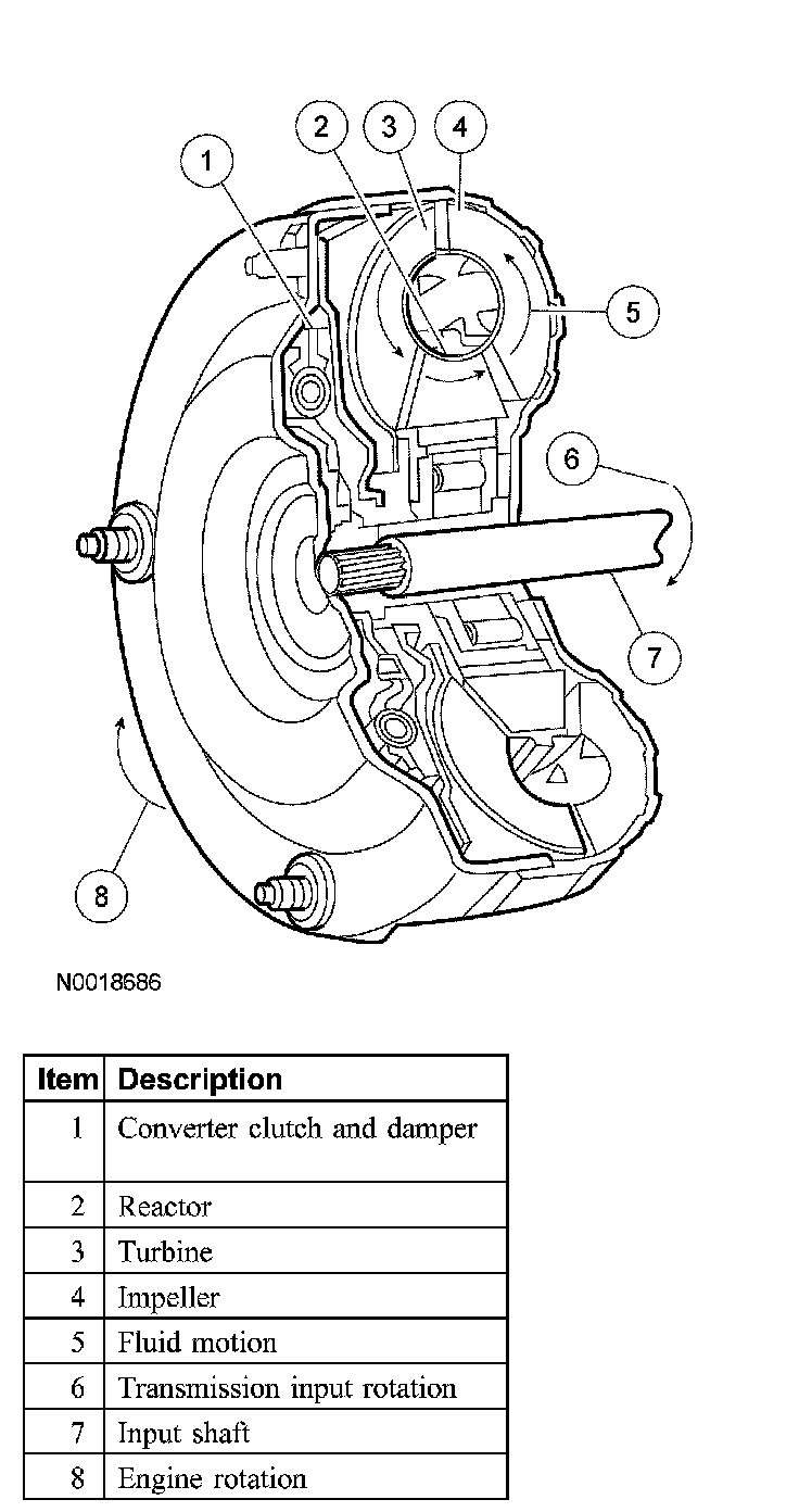 Torque ConverterThe torque converter transmits and multiplies torque. The torque converter is a 4-element device: