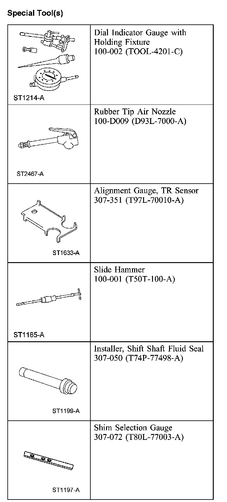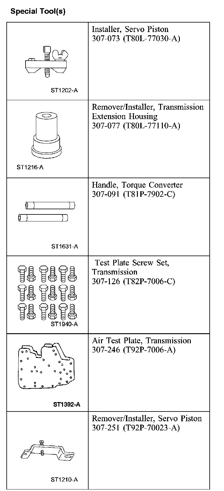 TransmissionSpecial Tool(s) (Part 1):