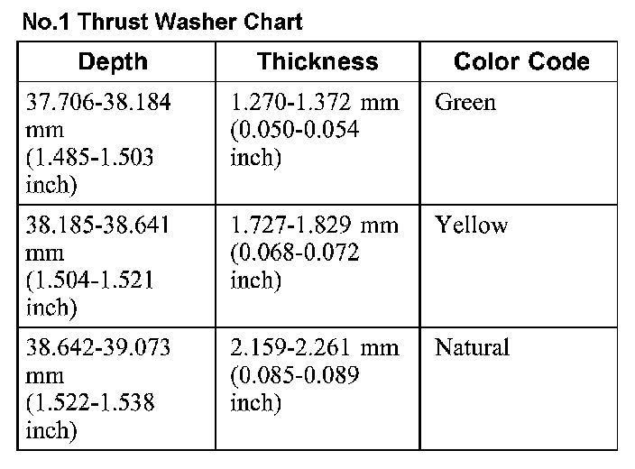 Use the No. 1 thrust washer chart to select the correct washer.