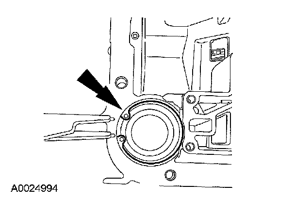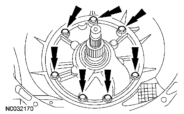 32. Remove the alignment pin and install the front pump bolts.