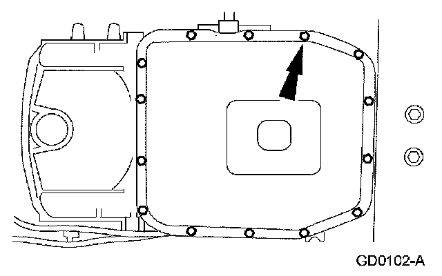 2. Loosen the transmission fluid pan bolts and allow the fluid to drain.