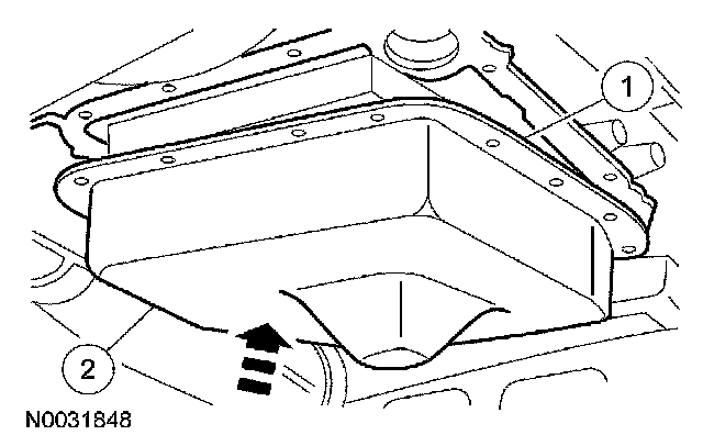 1 Position the fluid pan with the gasket in place.