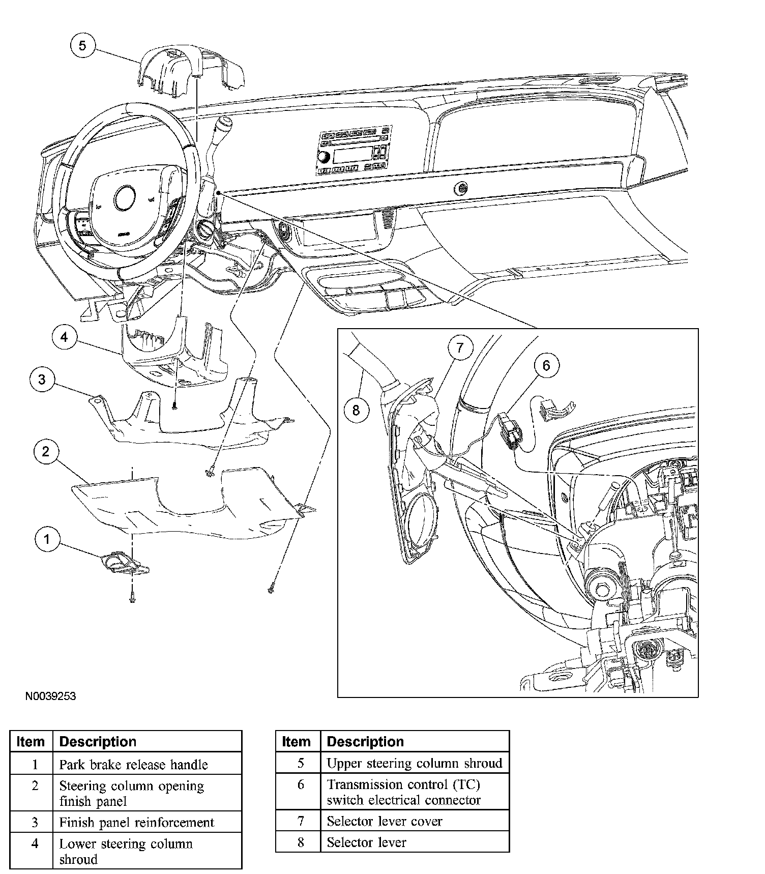 7. Separate the TC switch harness from the locators and the gearshift lever cover from the steering column.