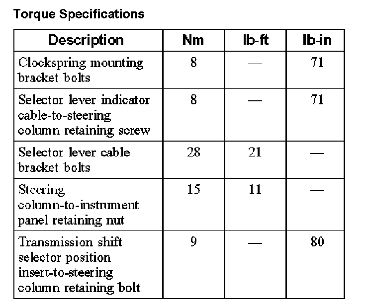 Torque Specifications (Part 1):