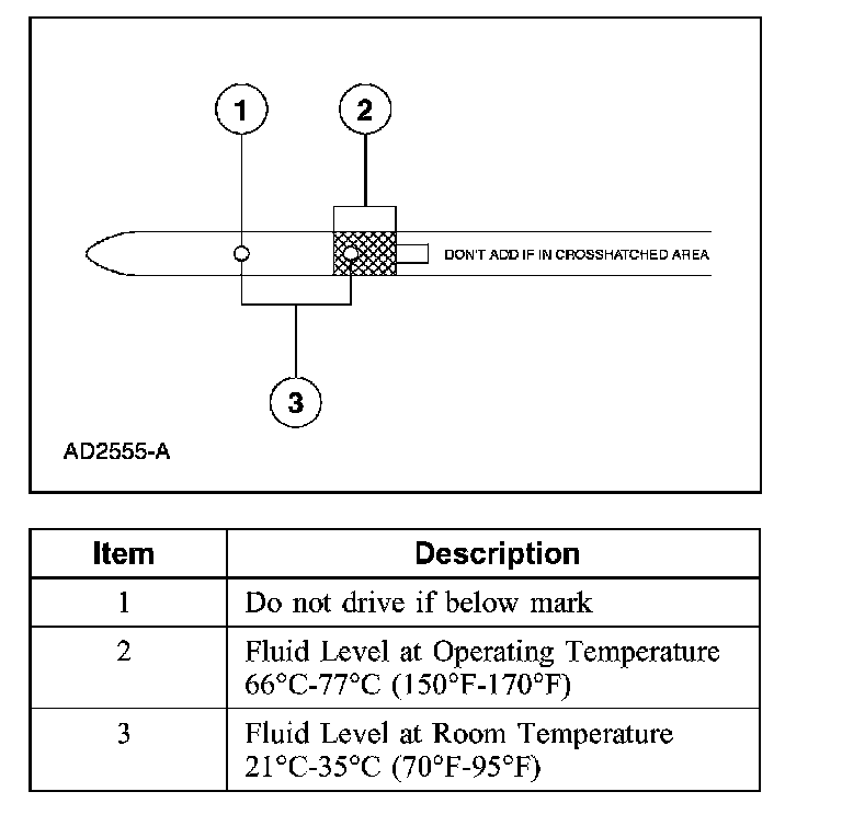 NOTE: The fluid level reading on the indicator will differ from operating and ambient temperatures. The correct reading should be within the normal operating temperature range.