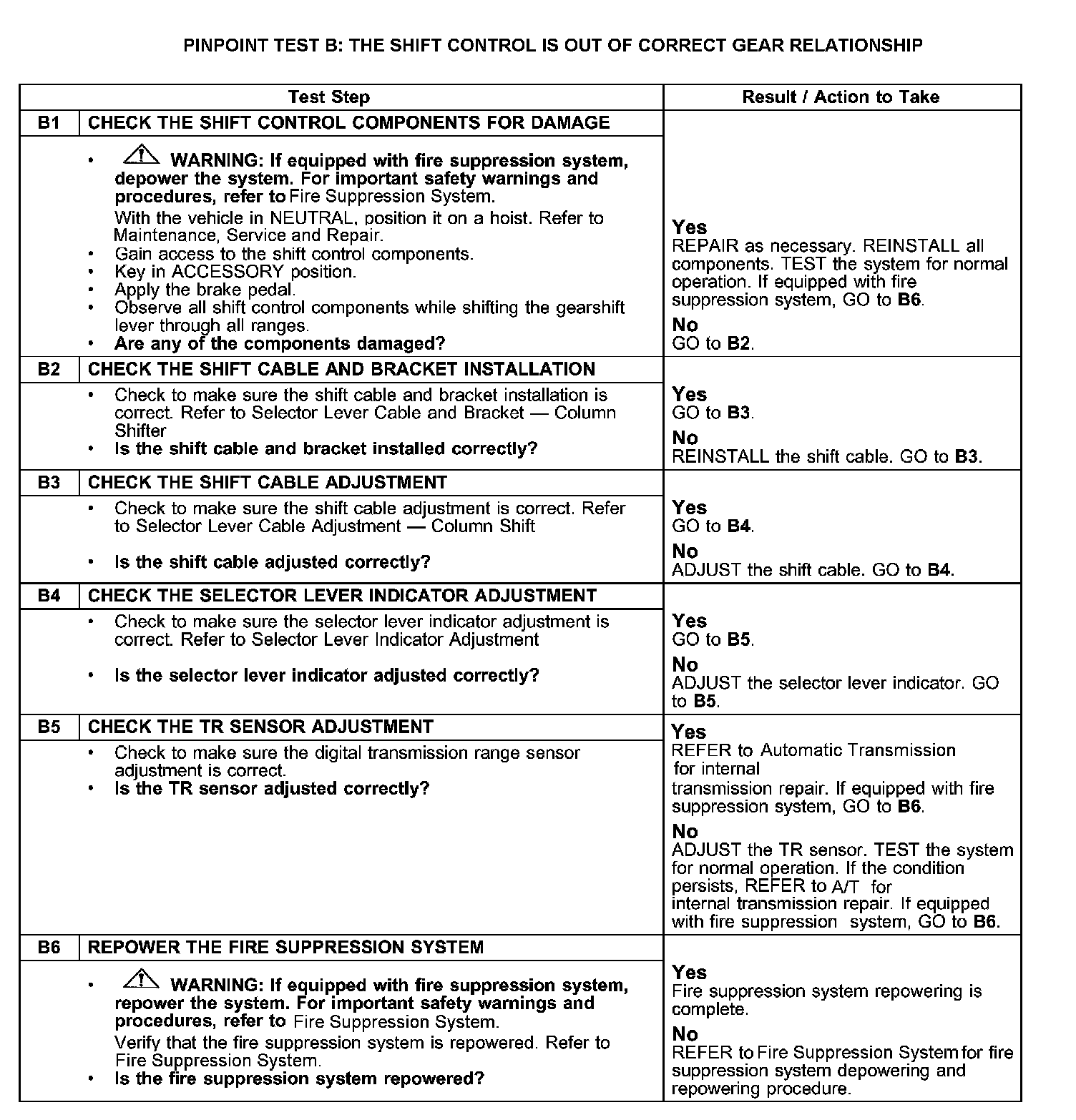 Pinpoint Test B: The Shift Control Is Out of Correct Gear Relationship