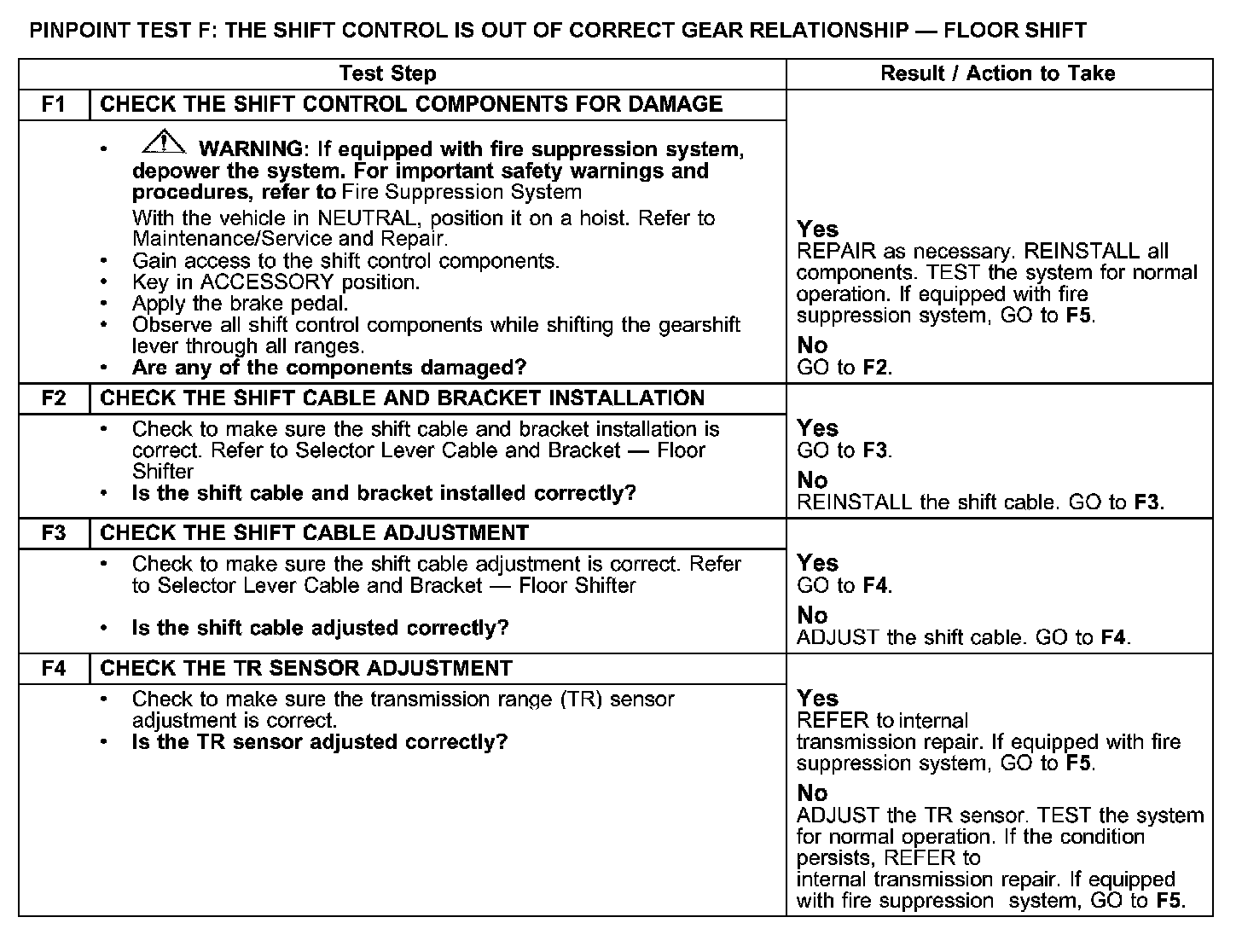 Test F: The Shift Control Is Out of Correct Gear Relationship - Floor Shift