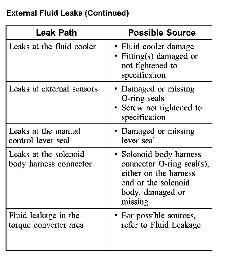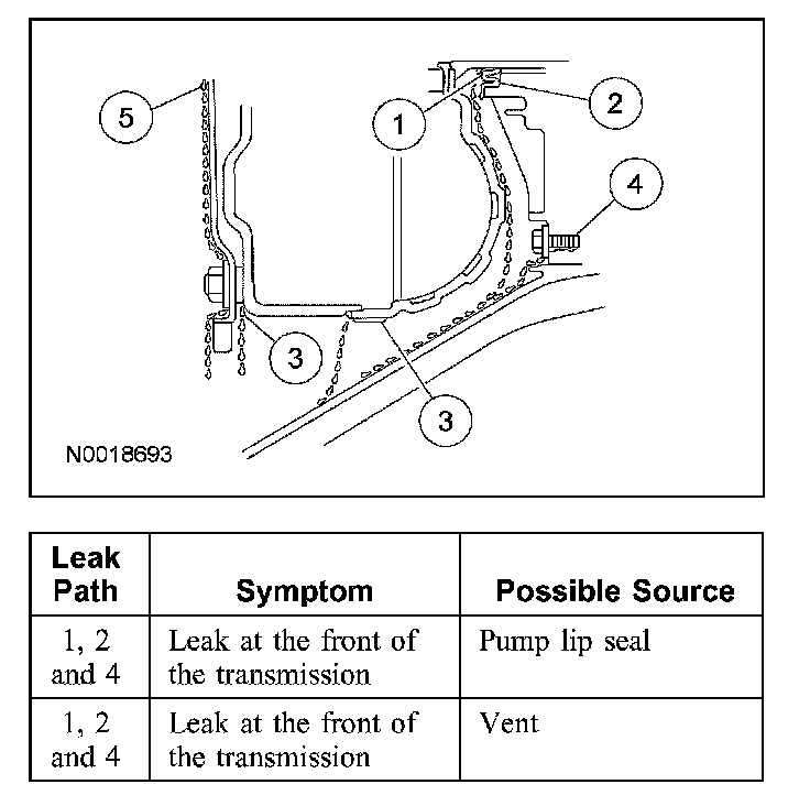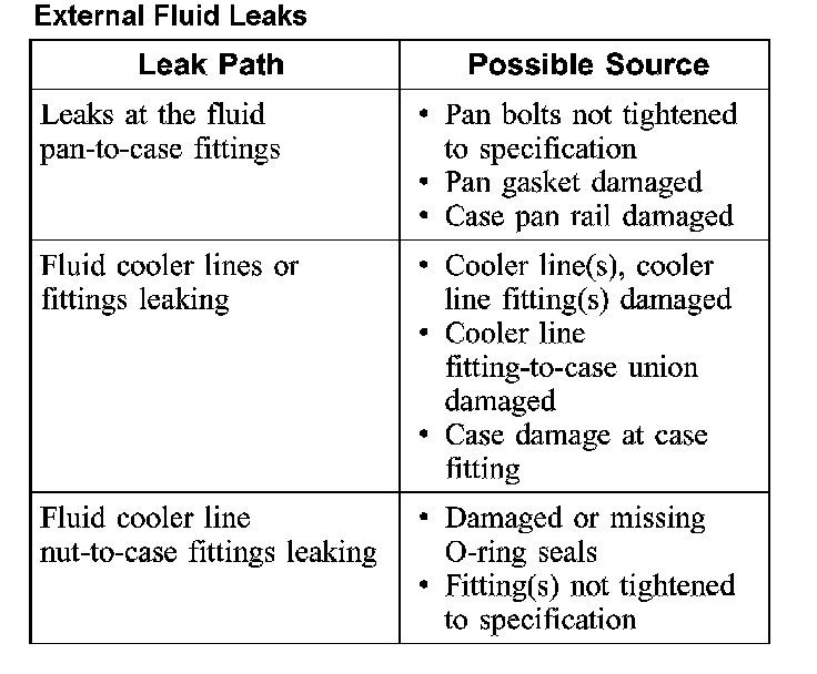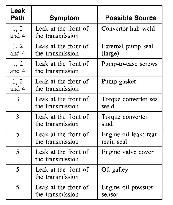 Leakage at the front of the transmission, as evidenced by fluid around the torque converter housing part of the case, may have several sources. By careful observation, it is possible in many instances to pinpoint the source of the leak before removing the transmission from the vehicle.
