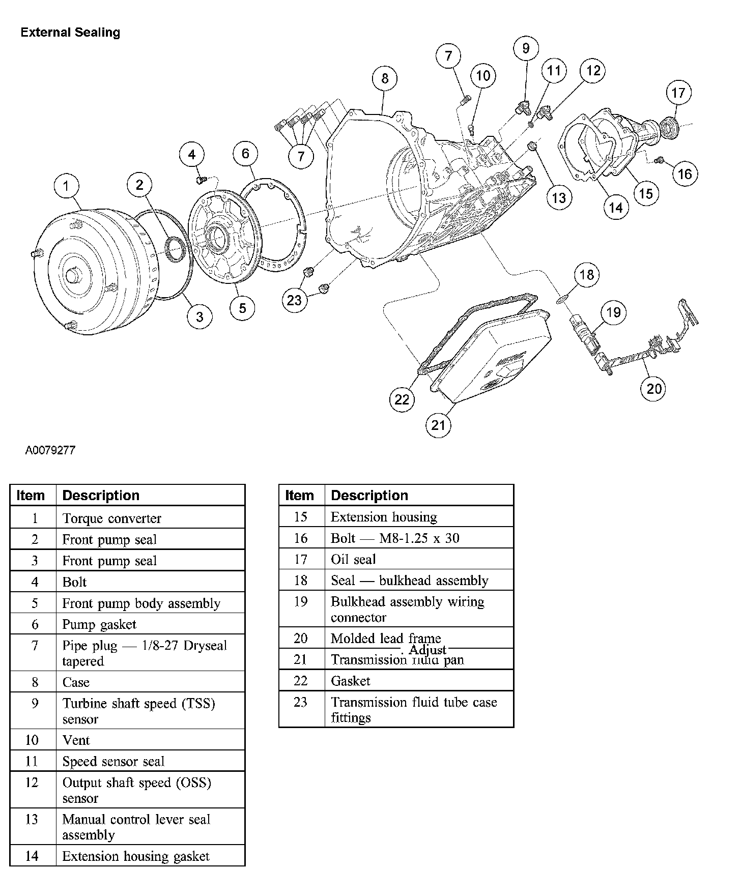 CAUTION: Do not try to stop a fluid leak by increasing the torque beyond specifications. This may cause damage to the transmission case threads.