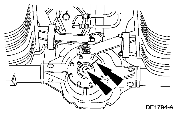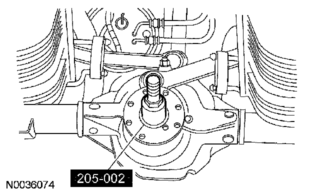 CAUTION: Remove the rear brake discs to prevent brake drag during drive pinion bearing preload adjustment.